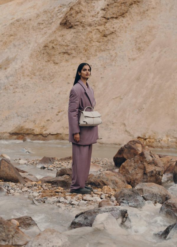 Le modèle « Mokki » valorise l’art du pliage avec son cuir grainé. Une découpe aux angles révèle le cuir lisse pour un subtil jeu de textures. Sous son rabat souligné d’un fermoir gravé, l’intérieur compartimenté est spacieux. Grâce à sa bandoulière adaptable maintenue par des mousquetons, le modèle suit avec fluidité le mouvement.|