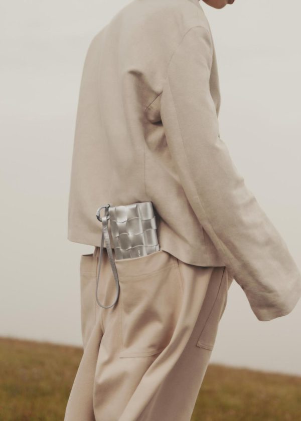 Le modèle Neiti réinterprète une technique iconique de la maroquinerie, le tressage, en l’adoucissant aux travers de lignes ondulées comme des vagues et en entrecroisant des bandes de cuir lisse. Un savant jeu de pliage donne à ce mini-sac sa forme et son volume.